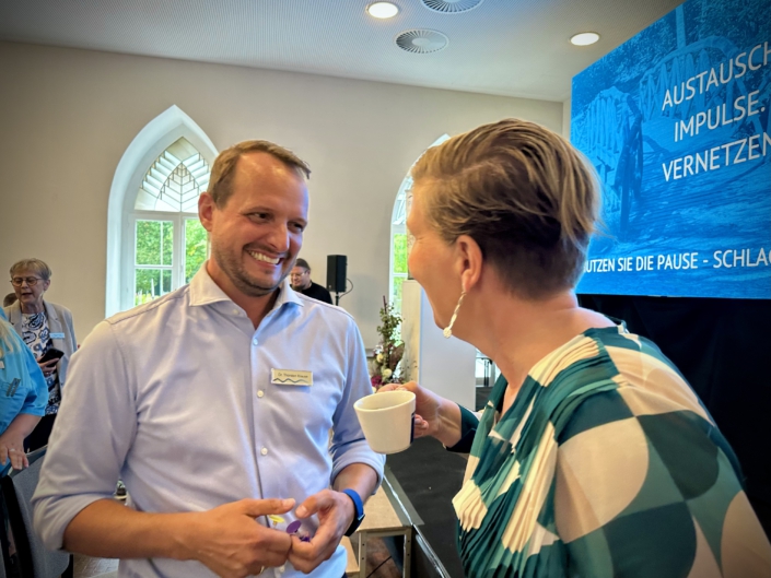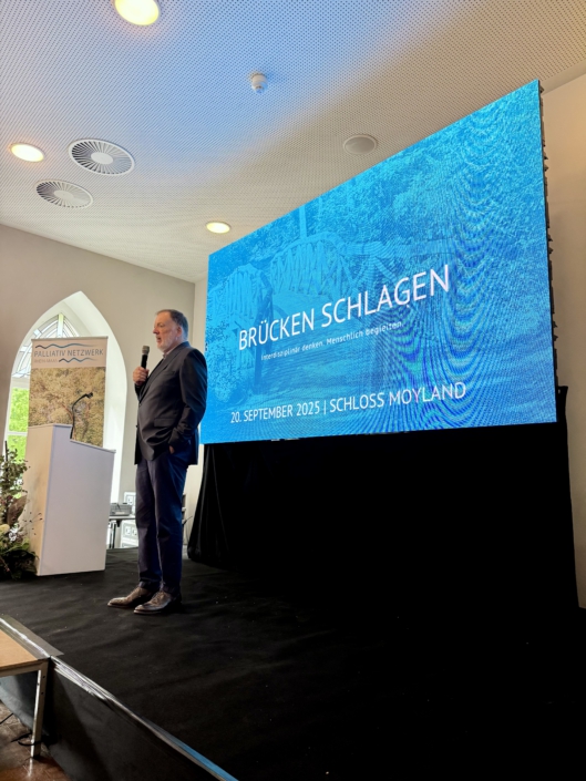 In entspannter Atmosphäre können Sie sich vernetzen und neue Kontakte knüpfen. Das besondere Ambiente von Schloss Moyland bildet hierfür den stimmungsvollen Rahmen, bei liebevoller Versorgung.